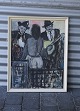 Beskrivelse: Maleri og Oliekridt af 2 musikanter med dame mellem sig.