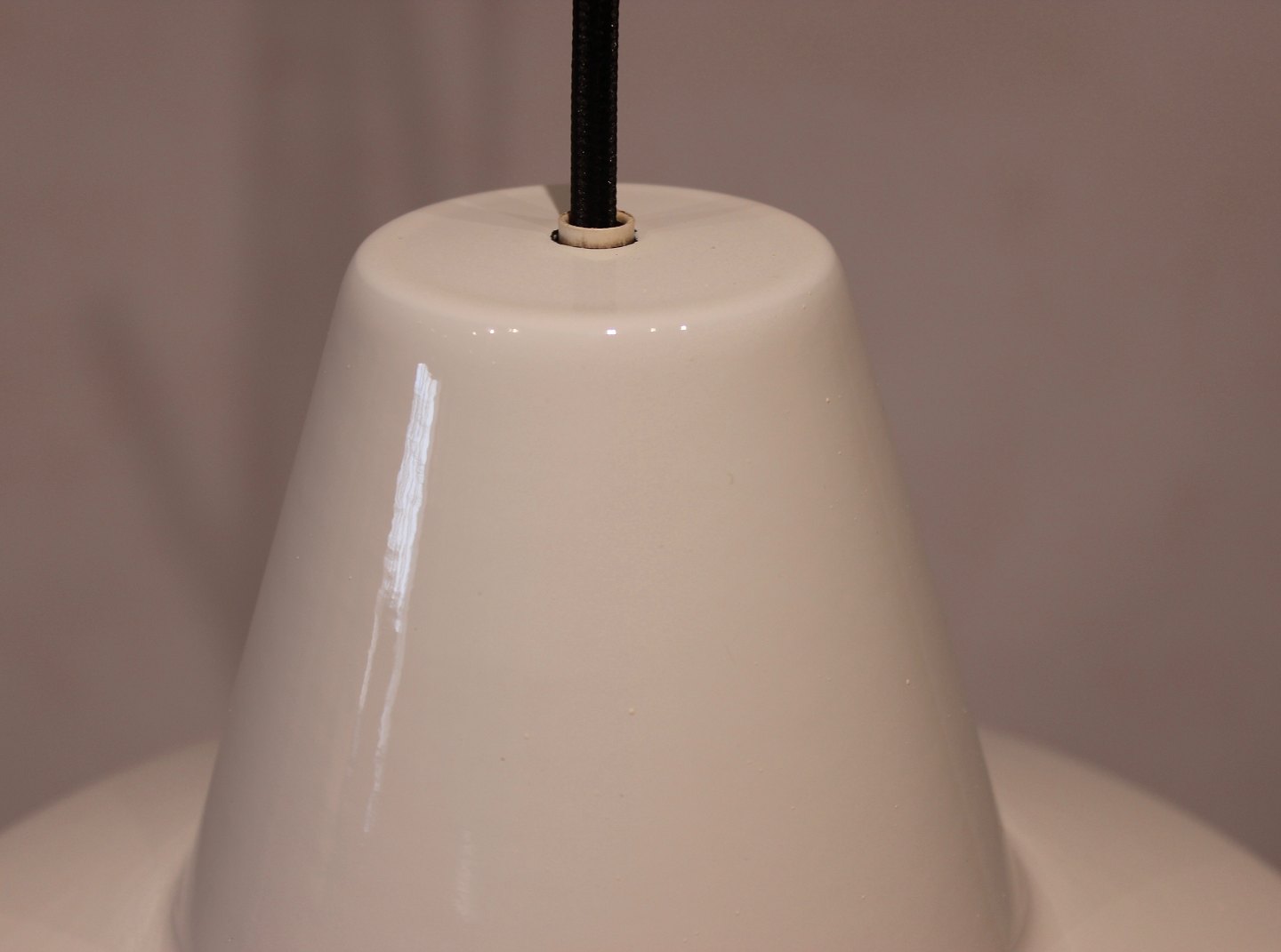 Beskrivelse: Et par hvide værkstedslamper designet af Louis Poulsen fra 1970erne. Lamperne er legeret med hvid emalje og ellers i flot brugt stand. Vi har flere på lager.