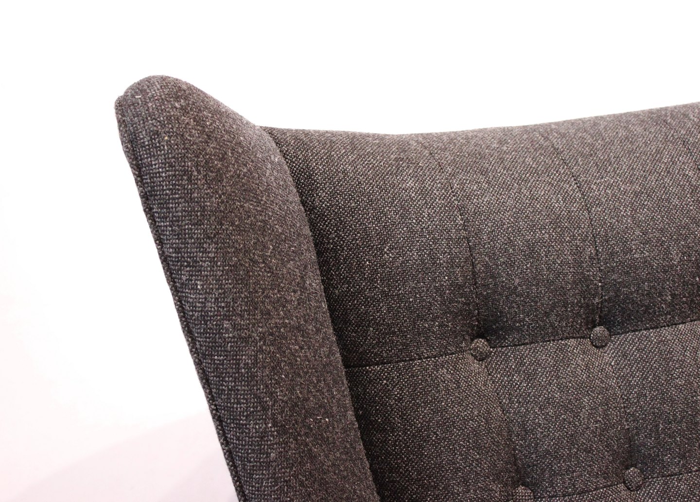 Hans J. Wegner, kendt for sin dygtighed inden for ergonomi og træarbejde, skabte Bamsestolen med en vision om at kombinere komfort og æstetik. Stolen har brede, polstrede armlæn og en høj ryg, der giver fremragende støtte og komfort. De solide træben, typisk lavet af eg eller valnød, tilføjer en varm og naturlig kontrast til det polstrede sæde og ryg.