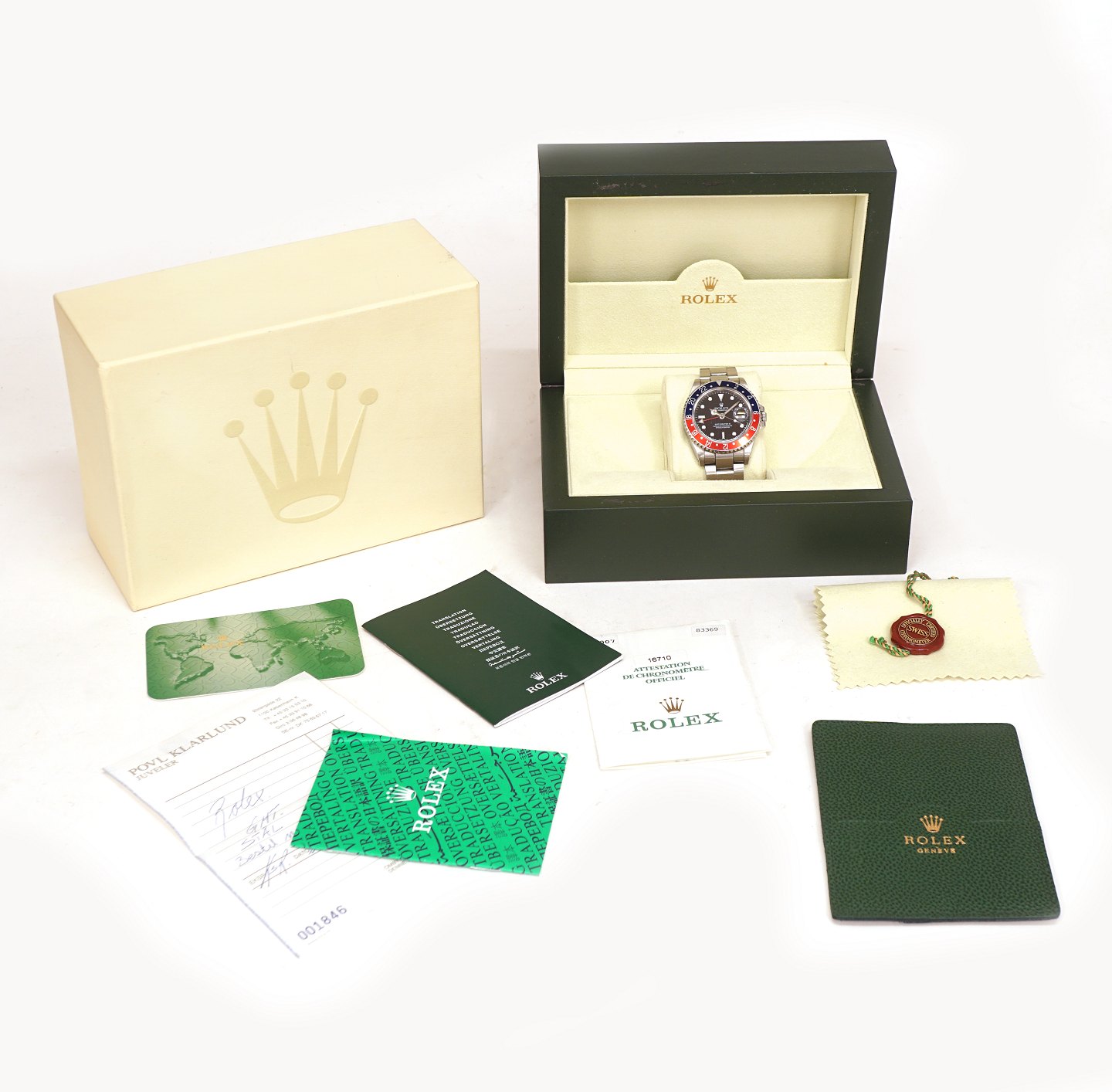 Rolex GMT II ref. 16710 Pepsi. Verkauft am 24.10.2000. Wird mit Box und Zertifikat geliefert. D: 40mm