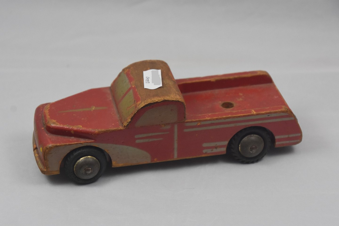 : Lastbil i træ, der er brugsspor efter leg med lastbilen