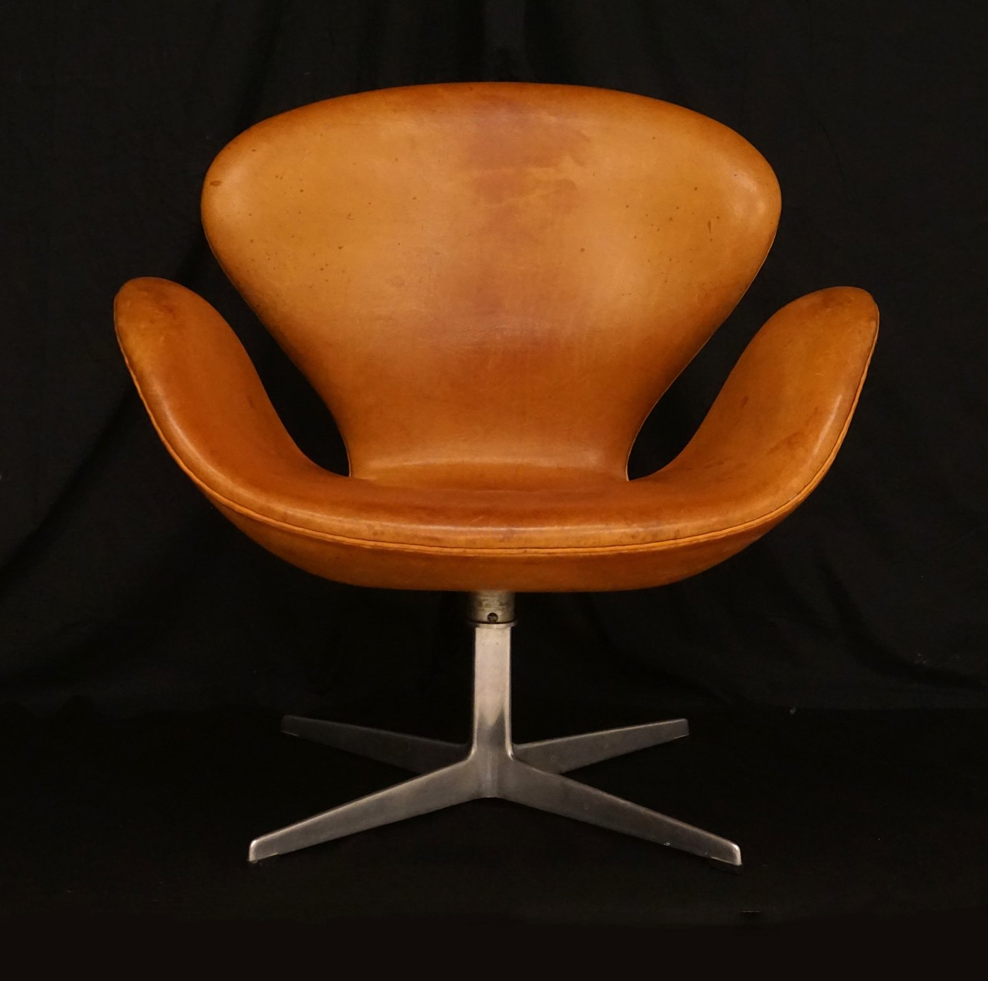 Beskrivelse: Arne Jacokbsen: Svanen i pateniret cognac farvet læder. Fremstillet i slutningen af 1960erne
