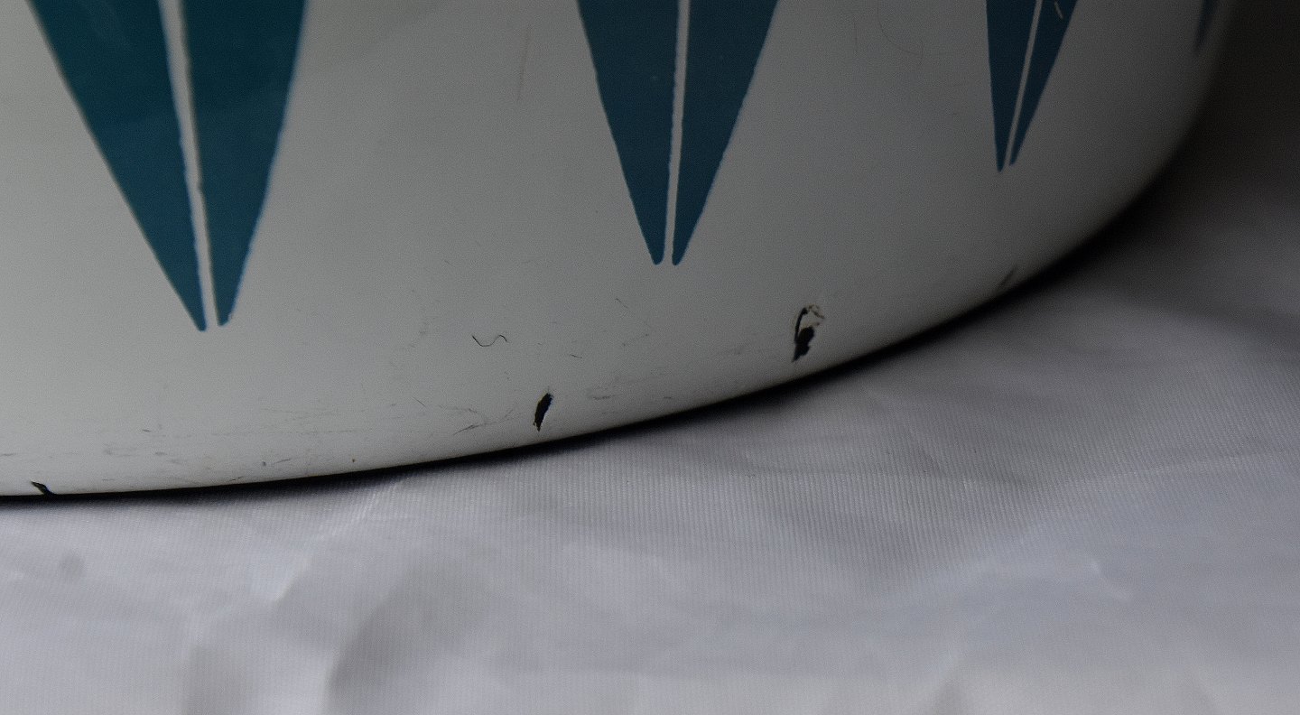 Der er en lille smugle spor af afslag i emaljen, nederst på gryden