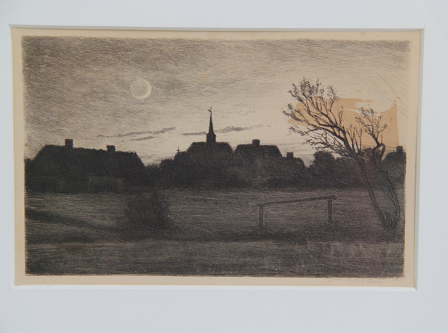 Radering: Carl Locher Måneskin 30.5 x 38 cm inkluisv guldramme