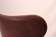 Beskrivelse: Et sæt af 6 Syver stole, model 3107, designet af Arne Jacobsen og fremstillet hos Fritz Hansen i 1980erne. Stolene er nypolstret i cognac patineret læder og i flot stand.