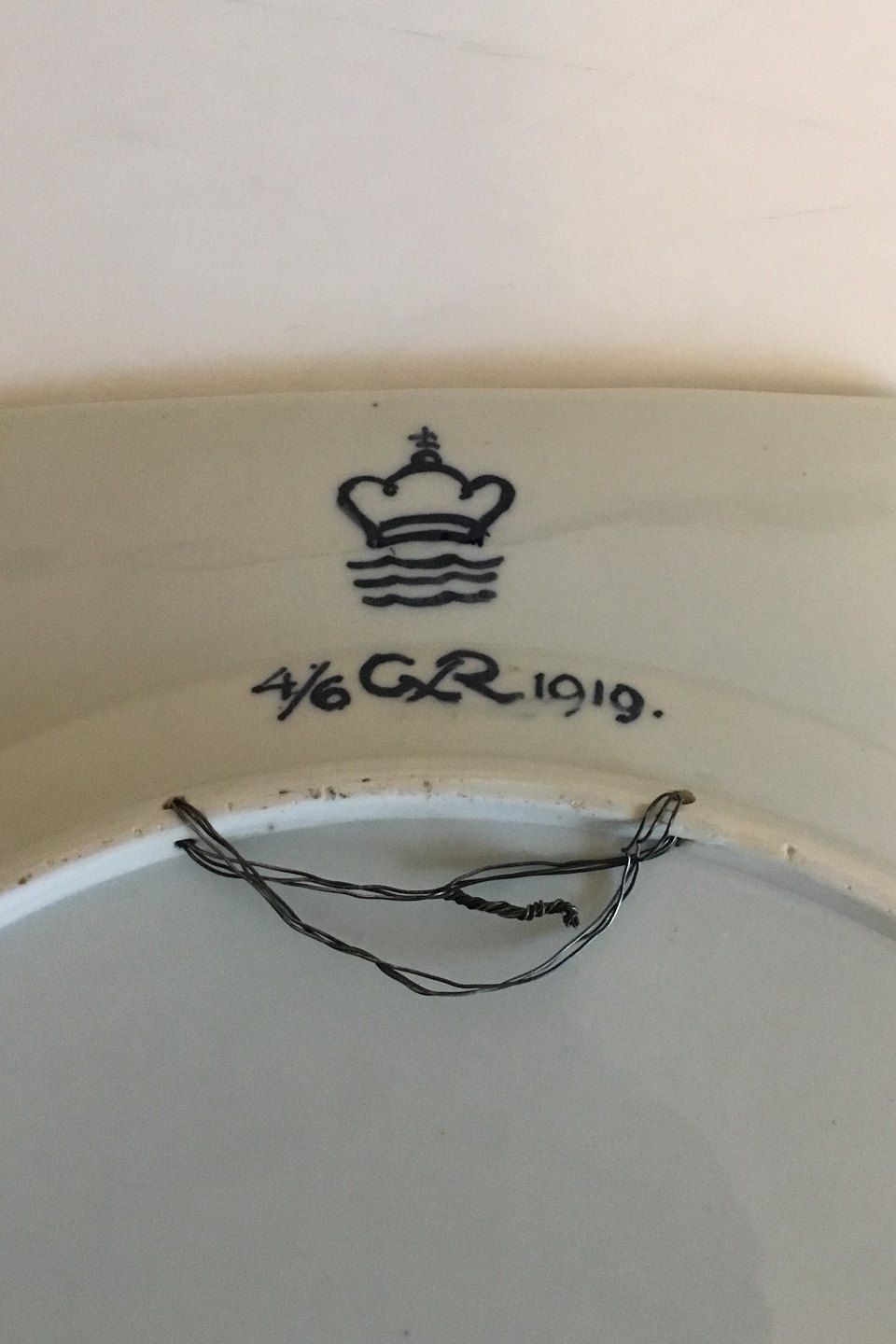 Royal Copenhagen Unika Fajance ottekantet platte dekoreret med gæs