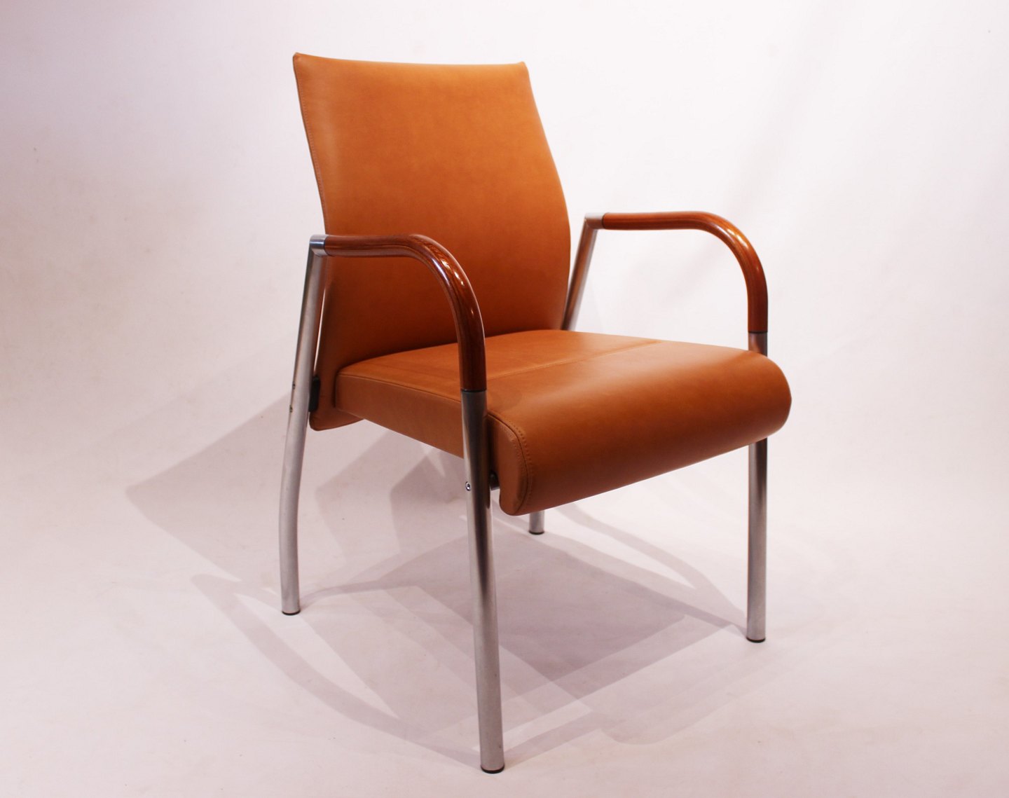 Model B8 kombinerer en slående minimalistisk æstetik med enestående komfort, hvilket gør dem velegnede til ethvert spiseområde eller boligindretning. Den nøje udvalgte cognacfarvede elegance læderpolstring tilføjer en luksuriøs og sofistikeret touch til hver stol, samtidig med at den sikrer holdbarhed og lang levetid.