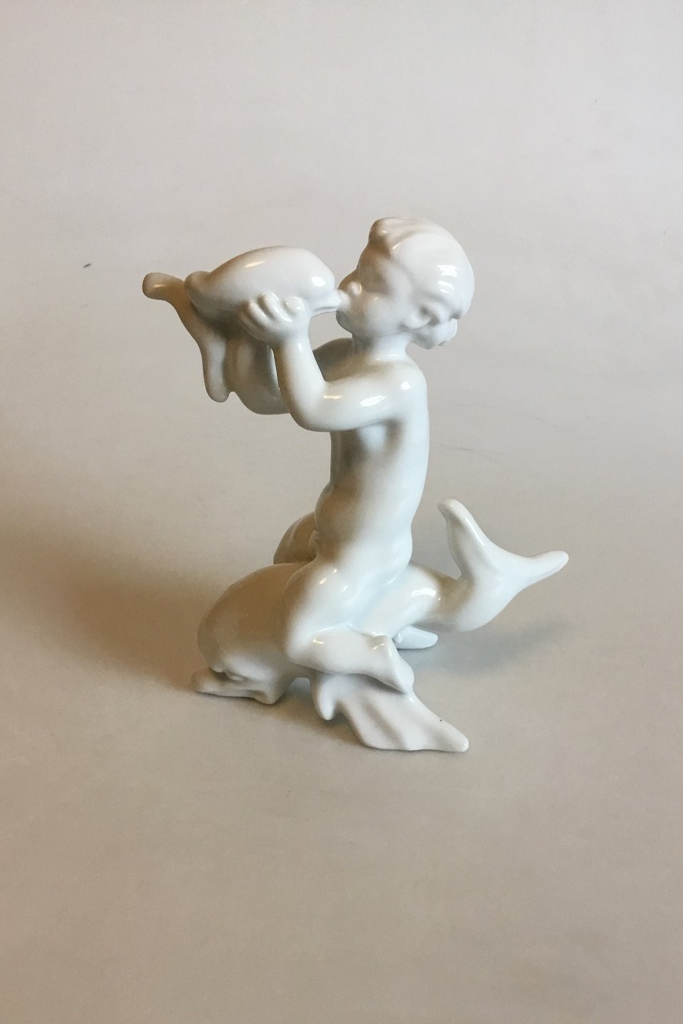 Bing & Grøndahl Blanc de Chine Figur Pige på Ryggen af Delfin No 4061