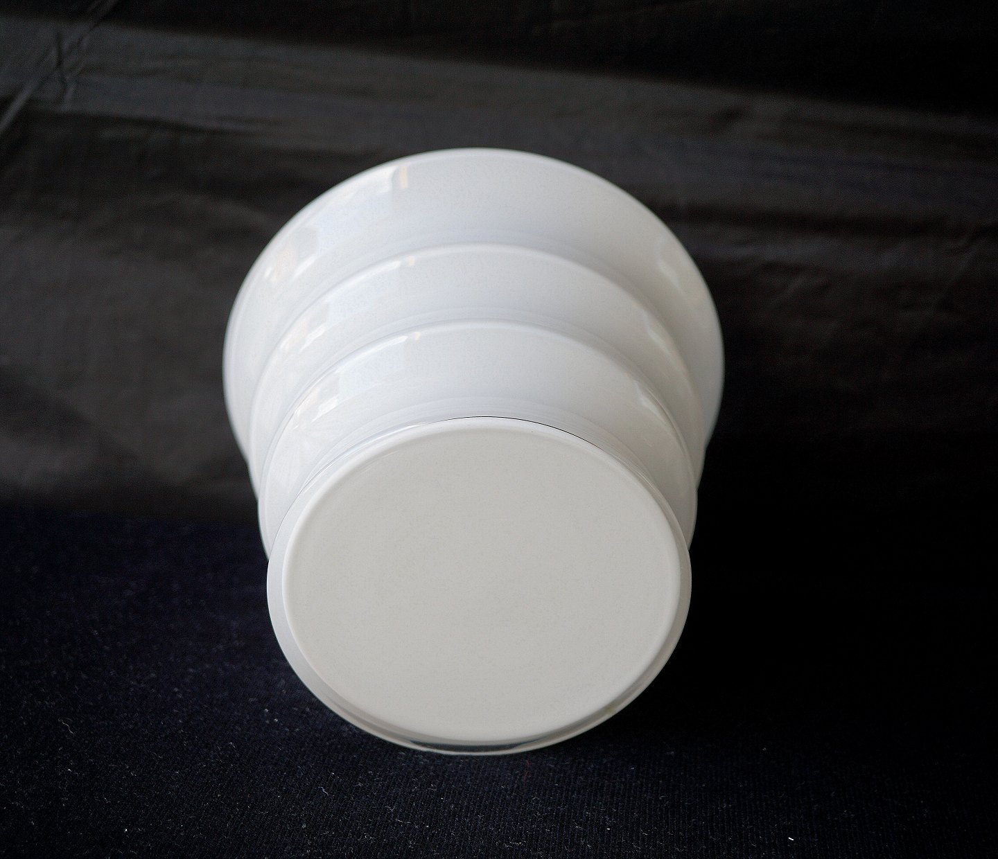 Karen Blixen, Anja Kjær, Holmegaard, opal glas, hvidt glas, konisk, urtepotteskjuler, vulster
