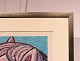 Beskrivelse: Tegning i blå farver med motiv af mand og hest signeret Heerup af Henry Heerup. Billedet er nummereret 166/300.