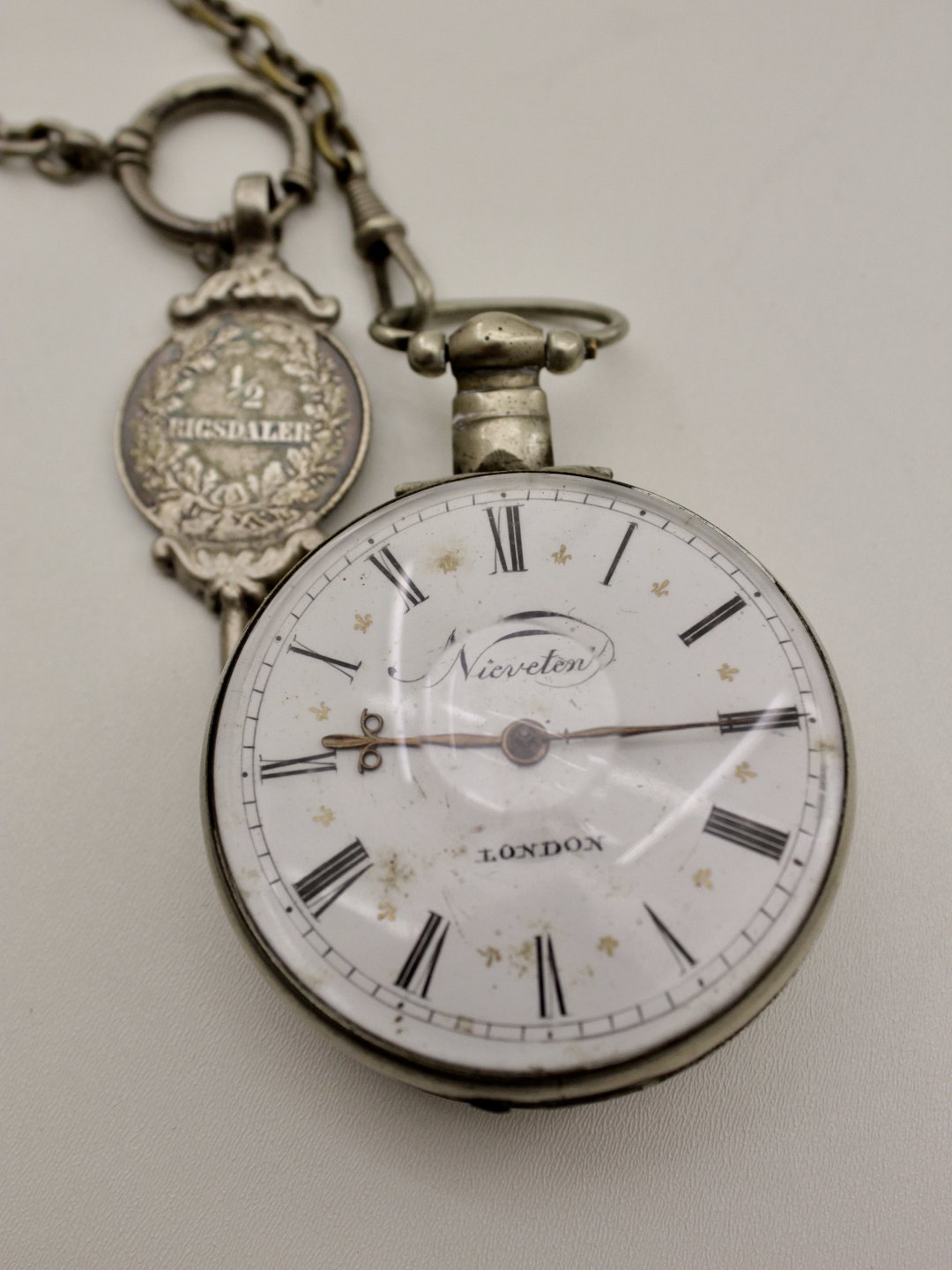 : Spindel lommeur Nieveton London D. 6,7 cm. 19.årh. går