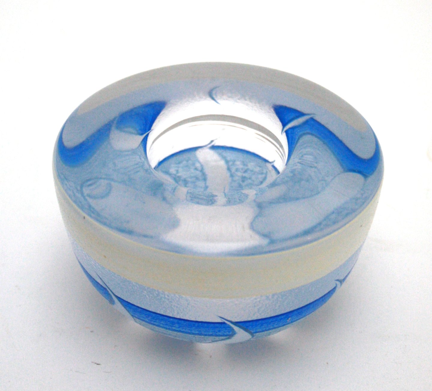 Beskrivelse: Kosta Boda, Taiga serien. Fyrfadstager. Designet af Monica Backström.