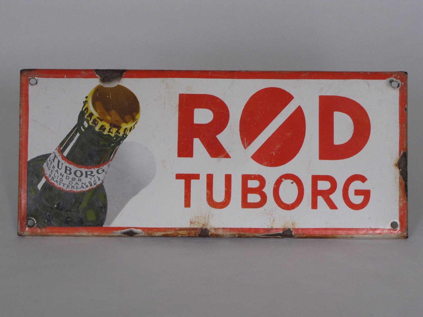 Description: Old Tuborg enamel sign. Age related defects in enamel, see photos. Length 33 cm. Wide 14 cm.