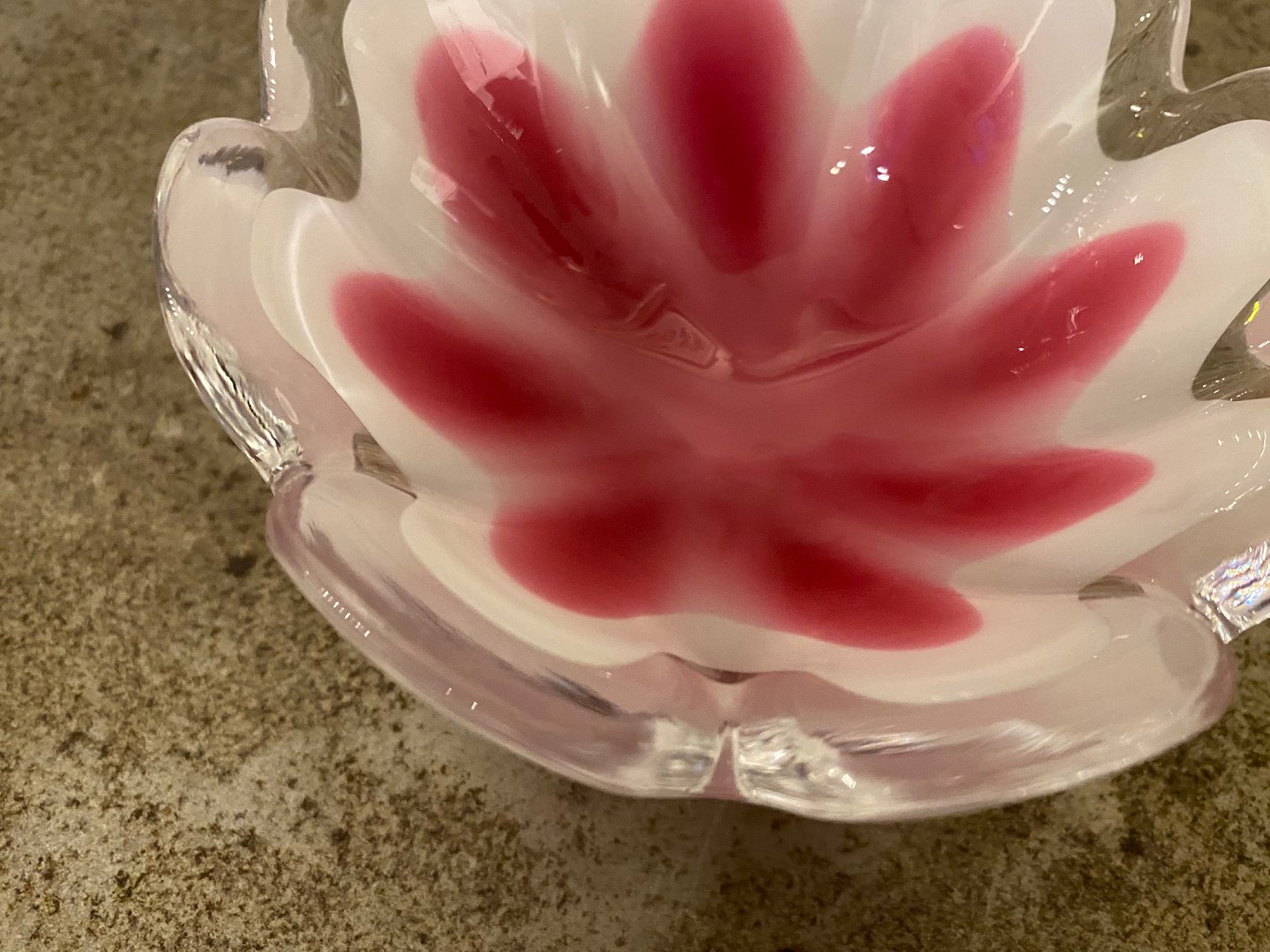 Paul Kedelv for svenske Flygfors, 1950erne, pink og hvid blomsterformet glasskål fra serien Coquille