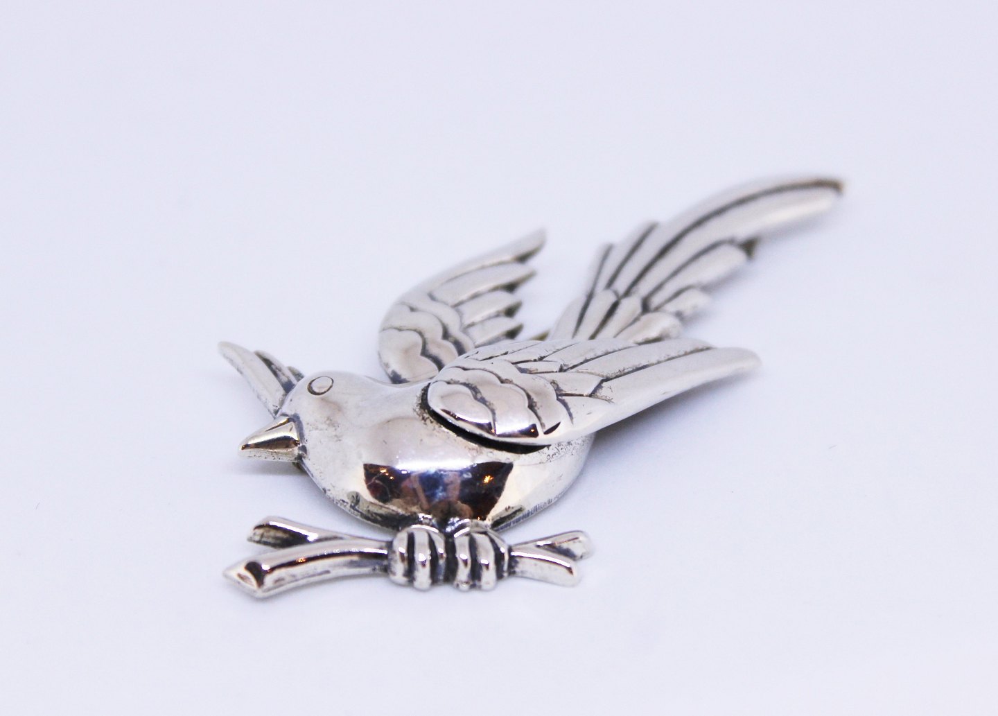Brooch in the shape of a bird in 925 sterling silver and stamped Monet.