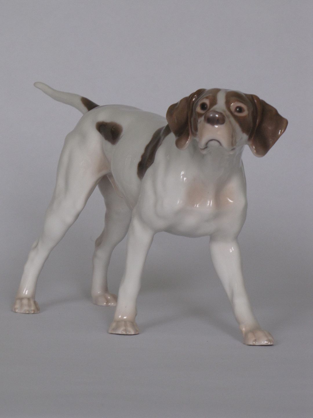 Description: Figurine No. 2006 Pointer / dog, artist Lauritz Jensen from Bing & Grondahl. Height 17 cm. Length 35 cm. 2. Sortering