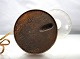 Beskrivelse: Bordlampe af messing og med glasskærm. Skærmen er af matteret glas med små, klare ovaler. Skærmen er regulerbar. Der er jern i bunden af lampen, for at få lampen til at stå stabilt.