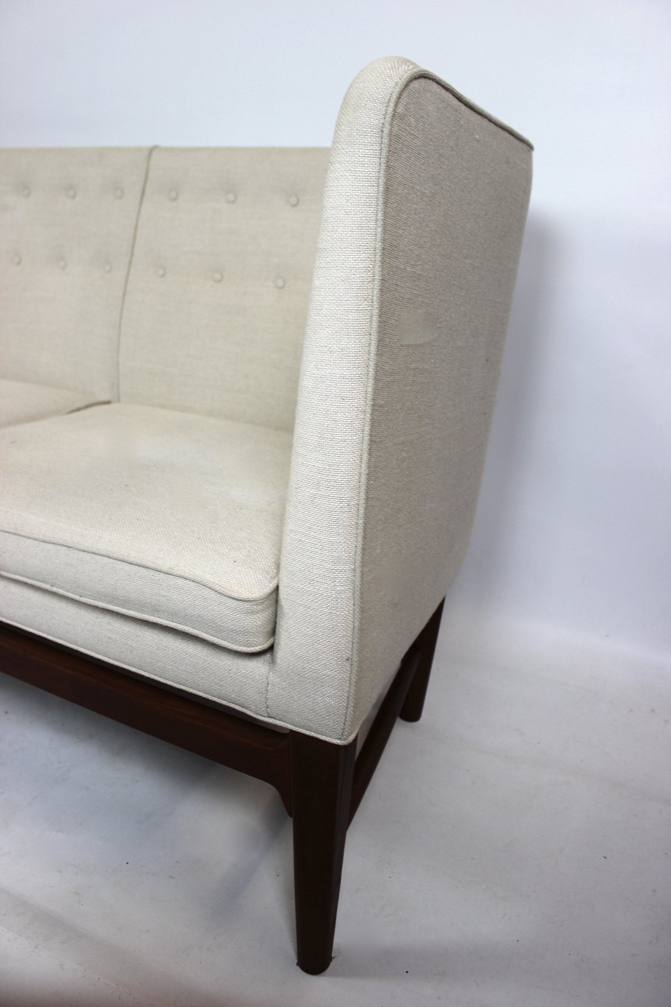 Beskrivelse: Mayor sofa, model AJ5, designet af Arne Jacobsen og Flemming Lassen i 1939 og fremstillet af &Tradition. Sofaen er polstret med lyst Hallingdal stof og med ben af træ.
