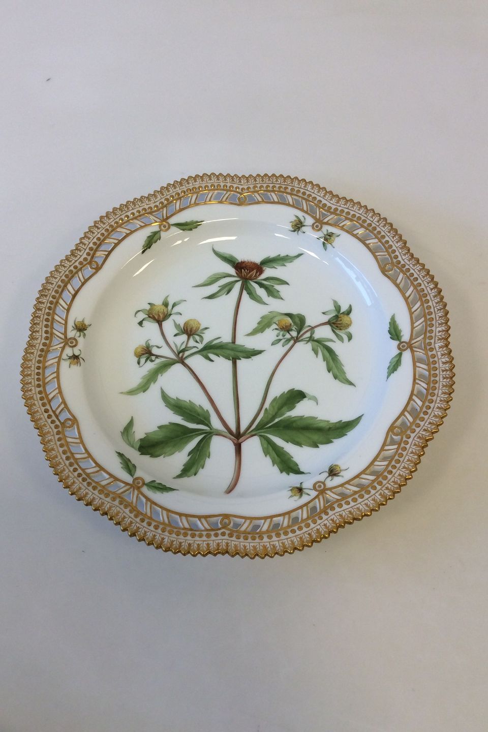 Description: Royal Copenhagen Flora Danica Charger plate with pierced border No 20/3574. Measures 28 cm / 11 1/32 in. 1st Quality. Latin name: "Bidens tripartitus L."