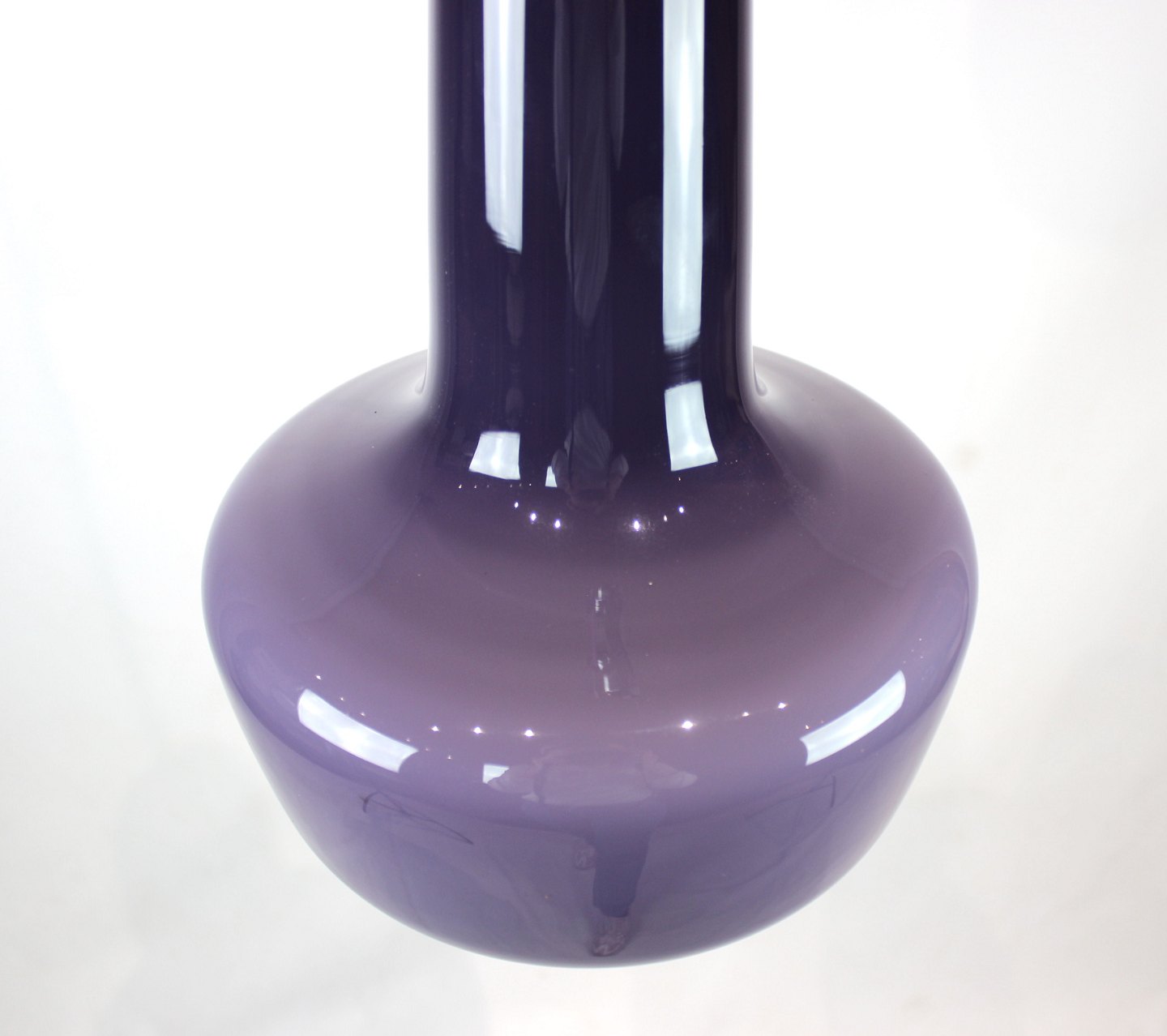 Beskrivelse: Lilla Kreta glas pendel af Jacob Bang for Holmegaard. Lampen er i flot brugt stand.