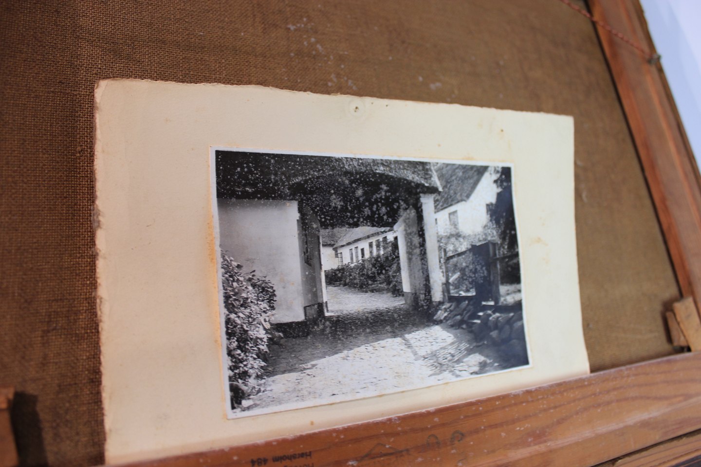 Maleri af gård signeret af Chr. Petersen i 1965, billedet af den rigtige gård hører med.