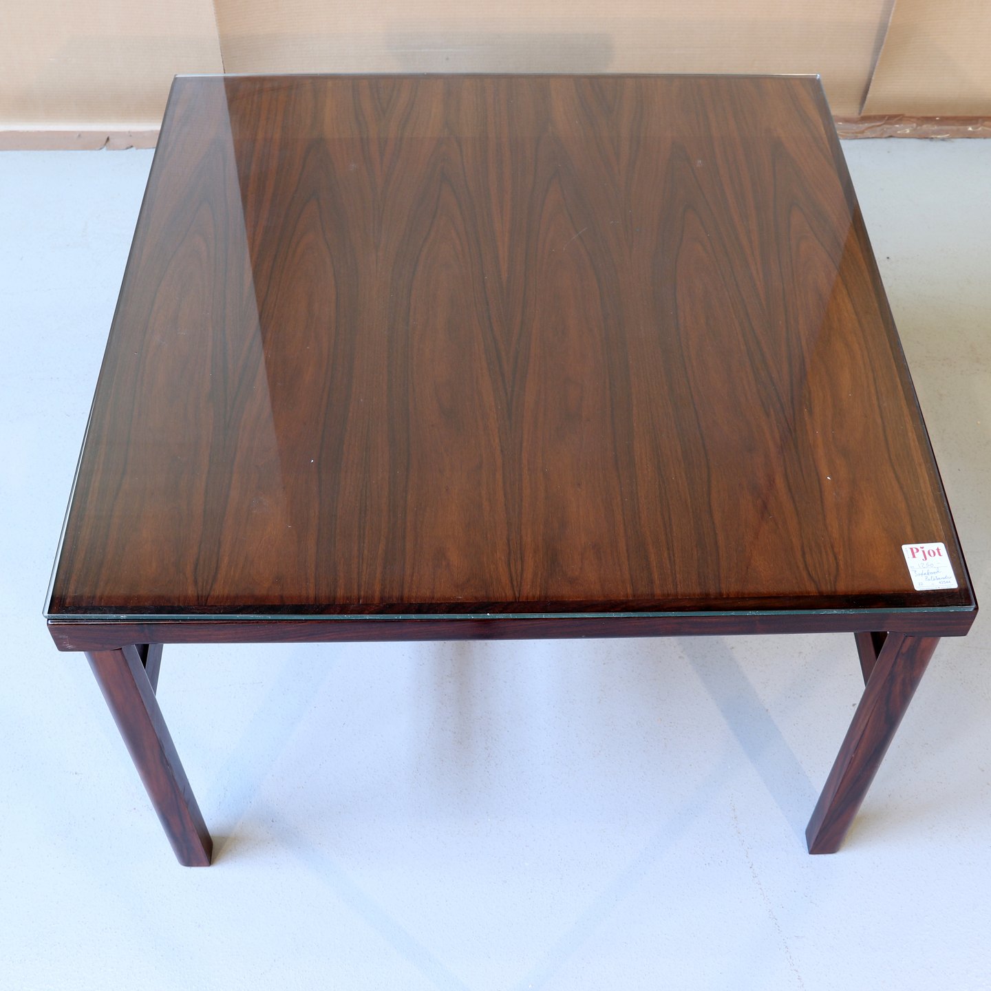 Beskrivelse: Kvadratisk sofabord i fineret og lakeret palisander m. glasplade,
