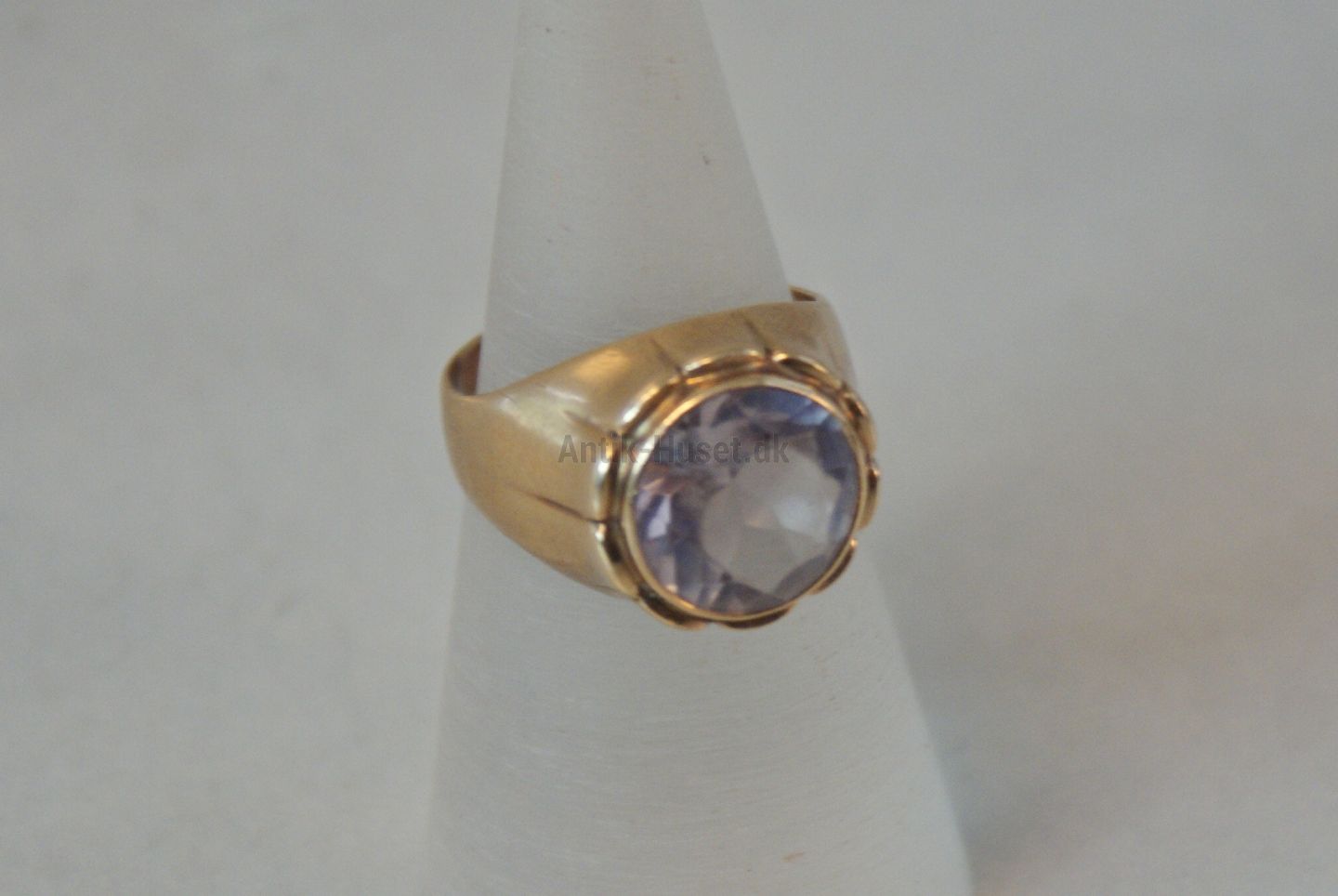 Beskrivelse: Guldring med lyse lilla sten 14 Karat