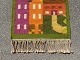 Svensk kelim vægtæppe af tekstilkunstner Ingegerd Silow. Bymotiv med skov i baggrunden. Midt 20. århundrede