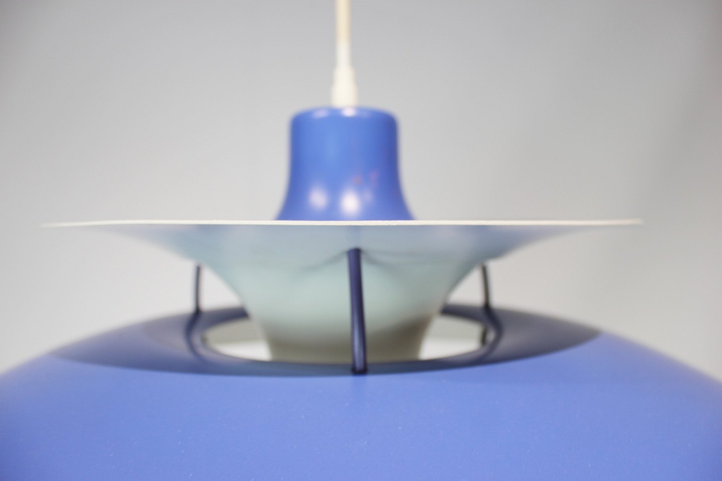 Blå PH5 lampe designet af Poul Henningsen i 1958 og produceret af Louis Poulsen.