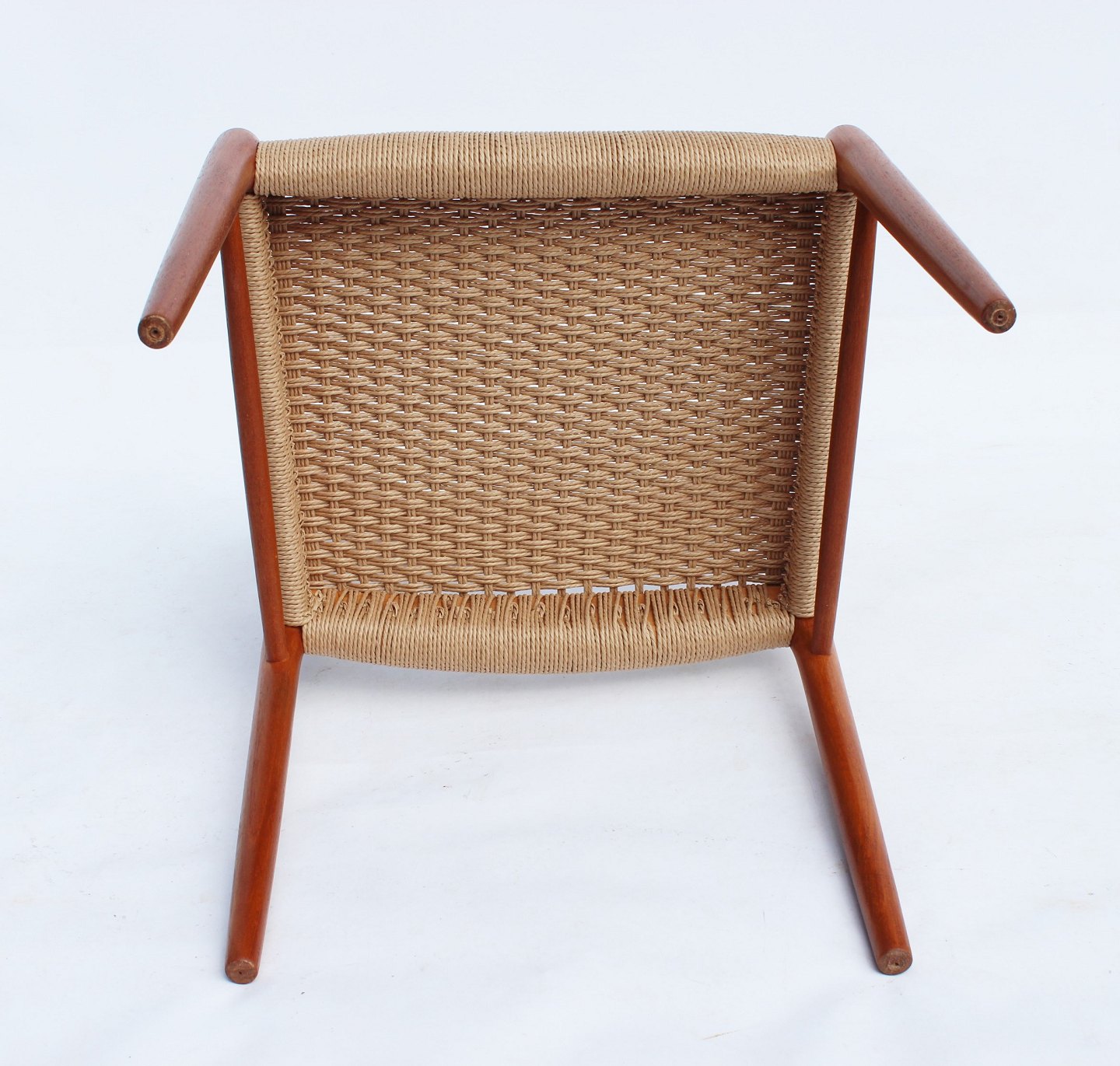 Et sæt af fire spisestuestole, model 75, i teak og papirflet af N.O. Møller fra 1960erne.