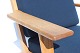 Beskrivelse: Et par armstole, model GE290, designet af Hans J. Wegner i 1950erne og fremstillet hos GETAMA i 1960erne. Stolene er af eg og hynder polstret med mørkeblåt uldstof.