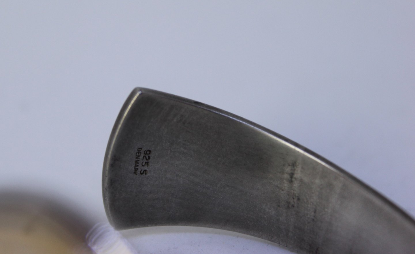 Description: Bangle watch of 925 sterling silver by Jan Stockmarr for Ole Mathiesen with quartz.