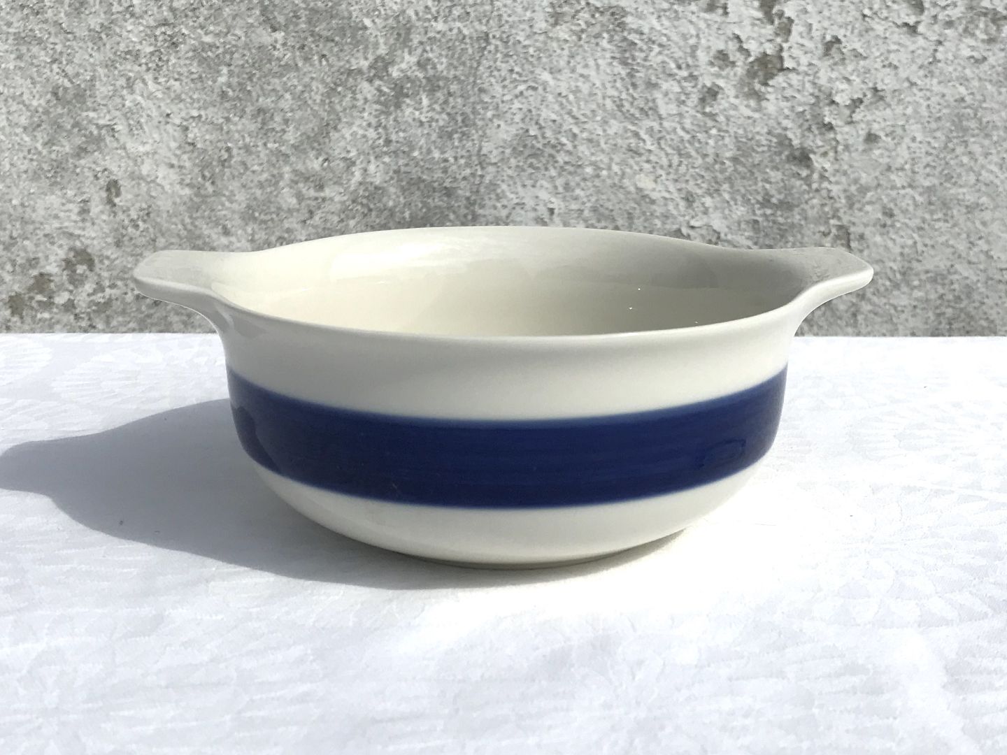 Beskrivelse: Rørstrand, Blå koka, Skål med hanke 17cm bred, 13,5cm i diameter, Ovnfast, Design Hertha Bengtsson *Perfekt stand*