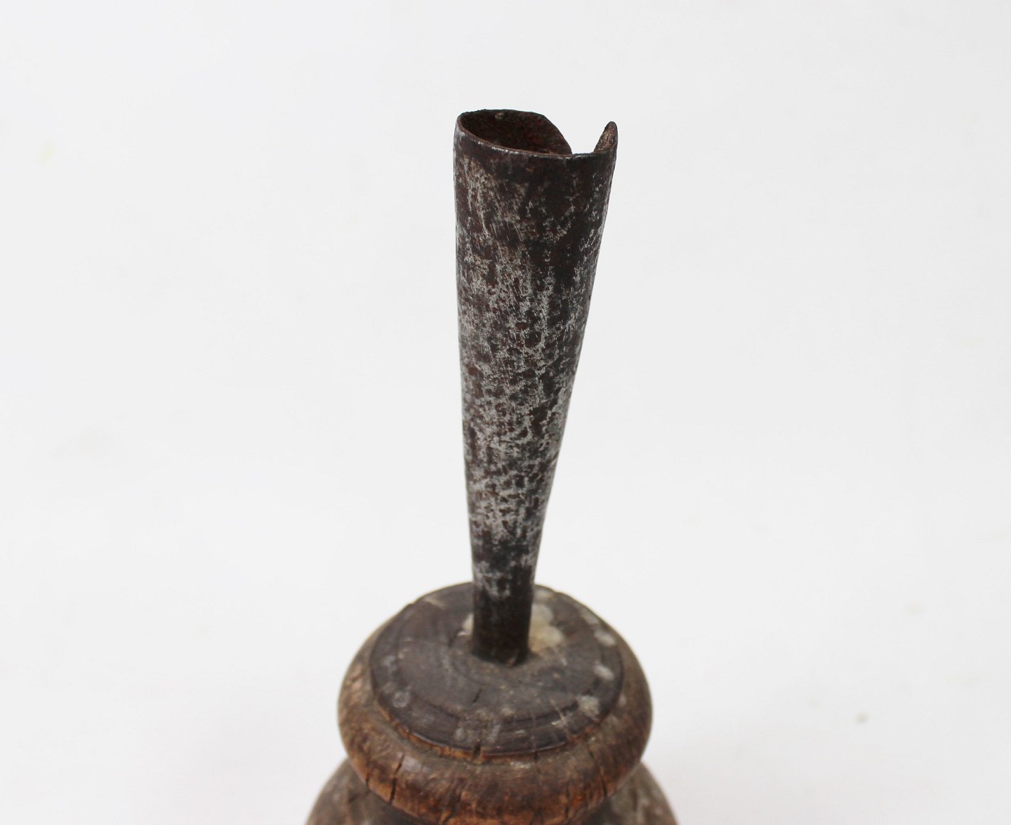 Svensk lysestage af træ og metal fra omkring år 1780.