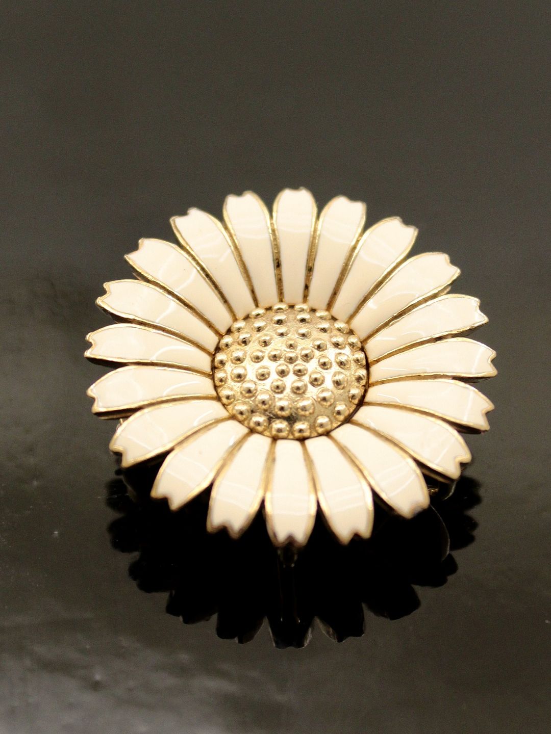 Beskrivelse: Marguerit broche dia. 3,3 cm. forgyldt sterling sølv med emalje fra Kranz & Zeigler Odense kan også bruges som vedhæng Nr. 420961