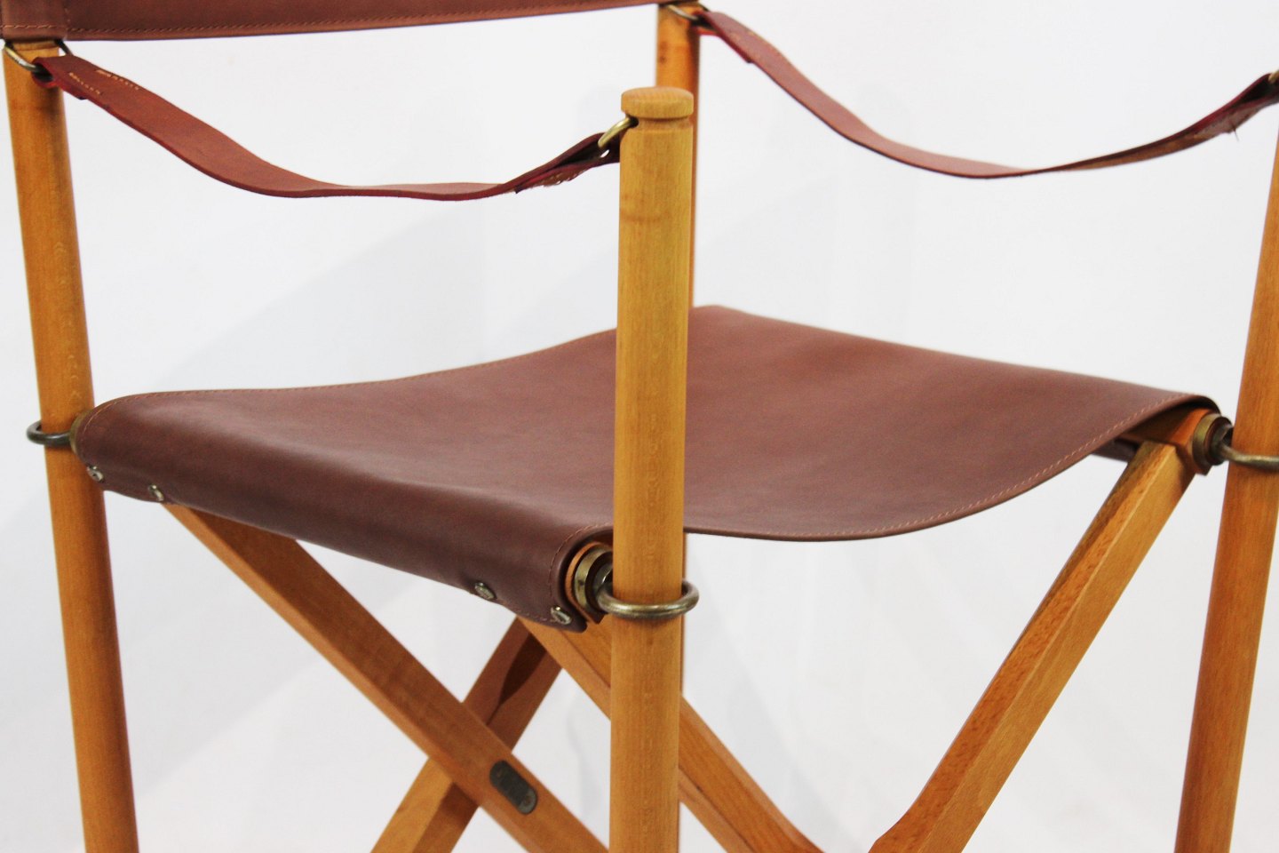 Foldestol, model MK99200, af bøg og brunt kernelæder designet af Mogens Koch fra 1960erne.