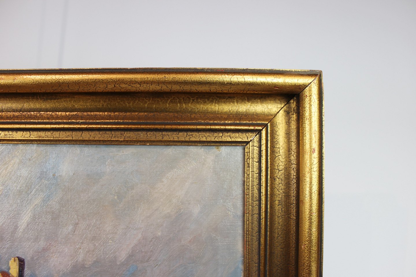 Stort oliemaleri med landsby motiv med ukendt signatur fra 1958.
