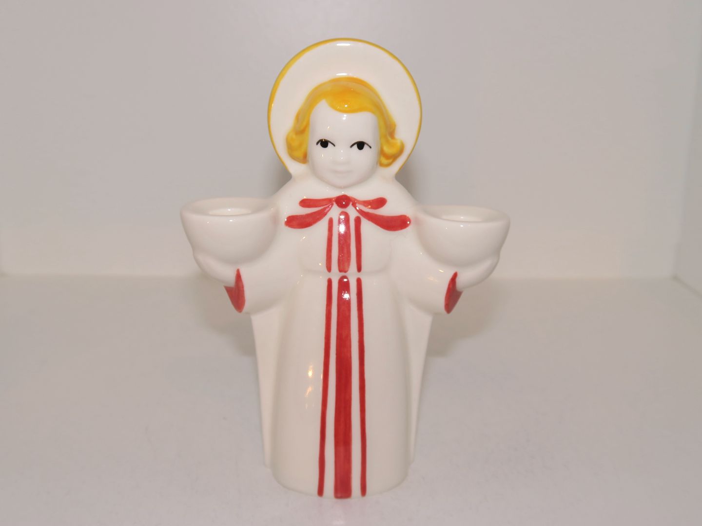 Beskrivelse: Royal Copenhagen julefigur, prinsesse med plads til to stearinlys.