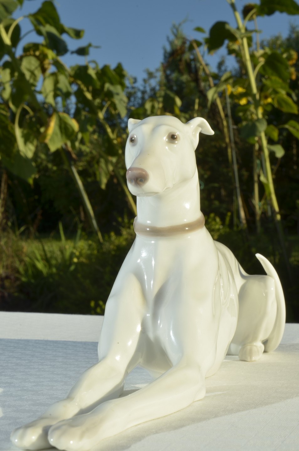 Beskrivelse: B&G figur porcelæn. B&G liggende Greyhund nr. 2079. Højde 11,3cm. Længde 27,5cm. 1. Sortering, fin hel stand.