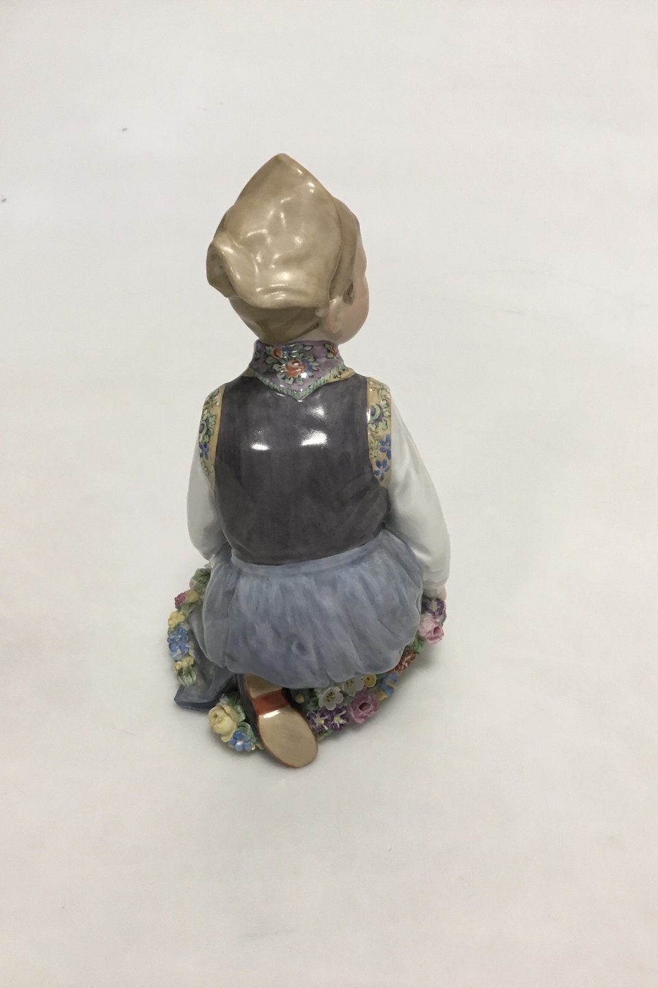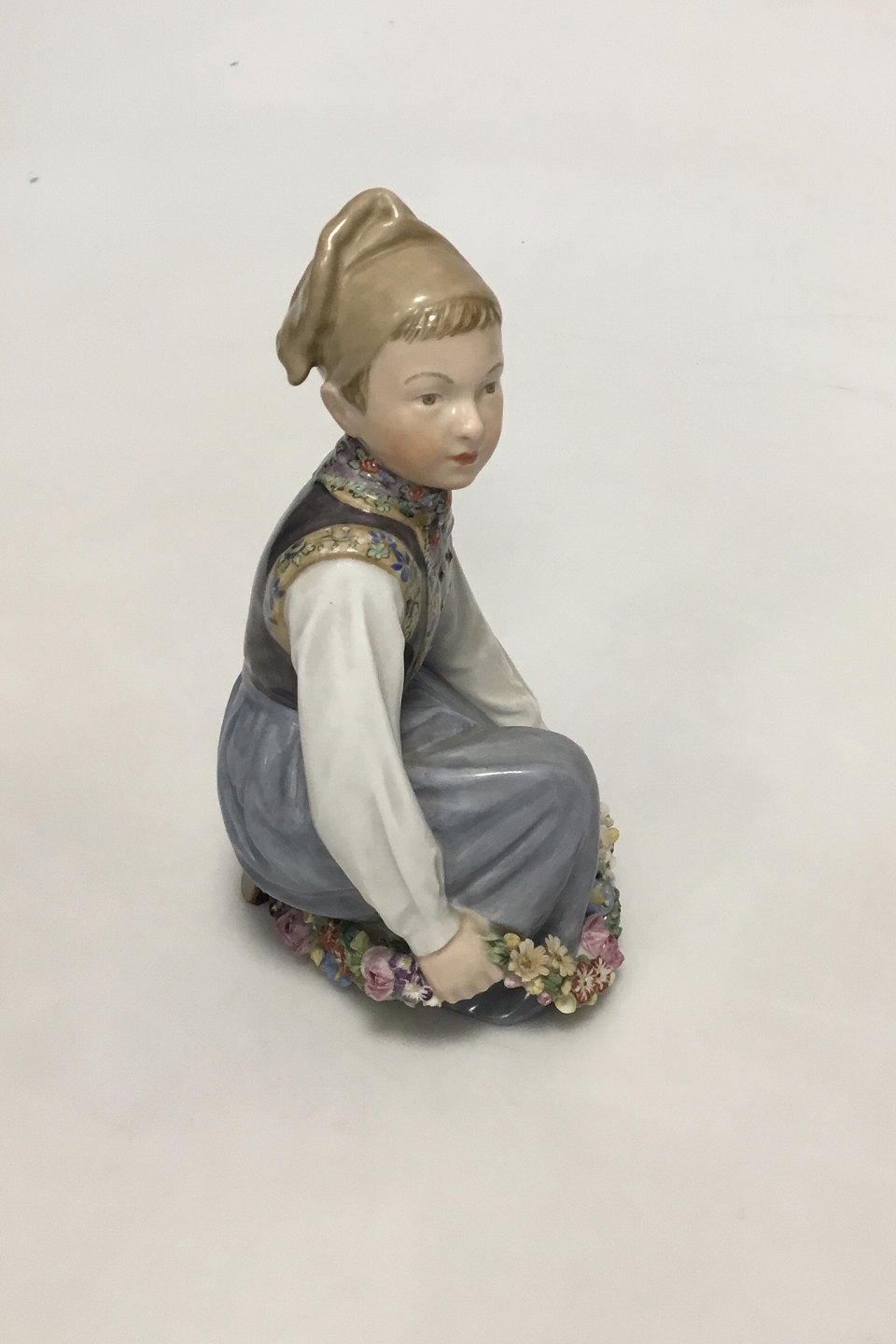 Description: Royal Copenhagen overglaze figurine Amager Boy nr. 12414. Measures 15cm and has minimal chips on flowers. Please look at all photos, thanks!