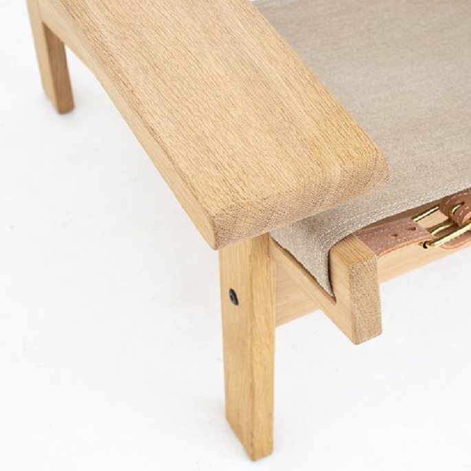Model 168 - 'Hunting chair' in soaped oak with natural canvas attached with saddle leather straps.