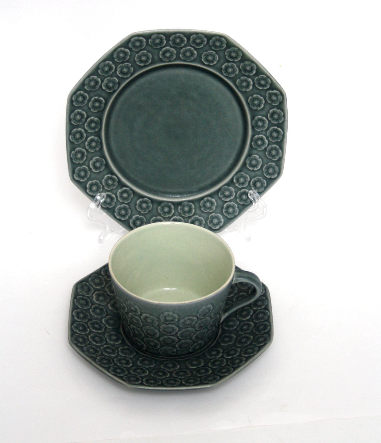 Tekop med underkop. Højde 6 cm. Diameter 9 cm. 8 kantet underkop 14,5 cm. God stand. Pris: SOLGT