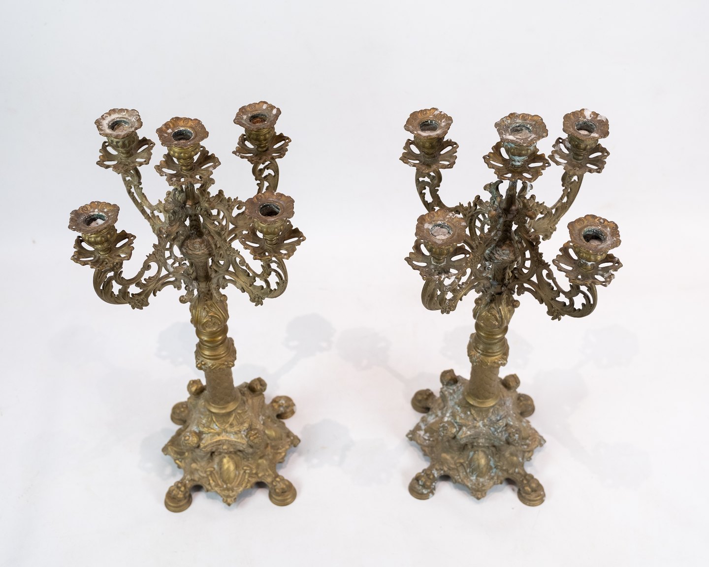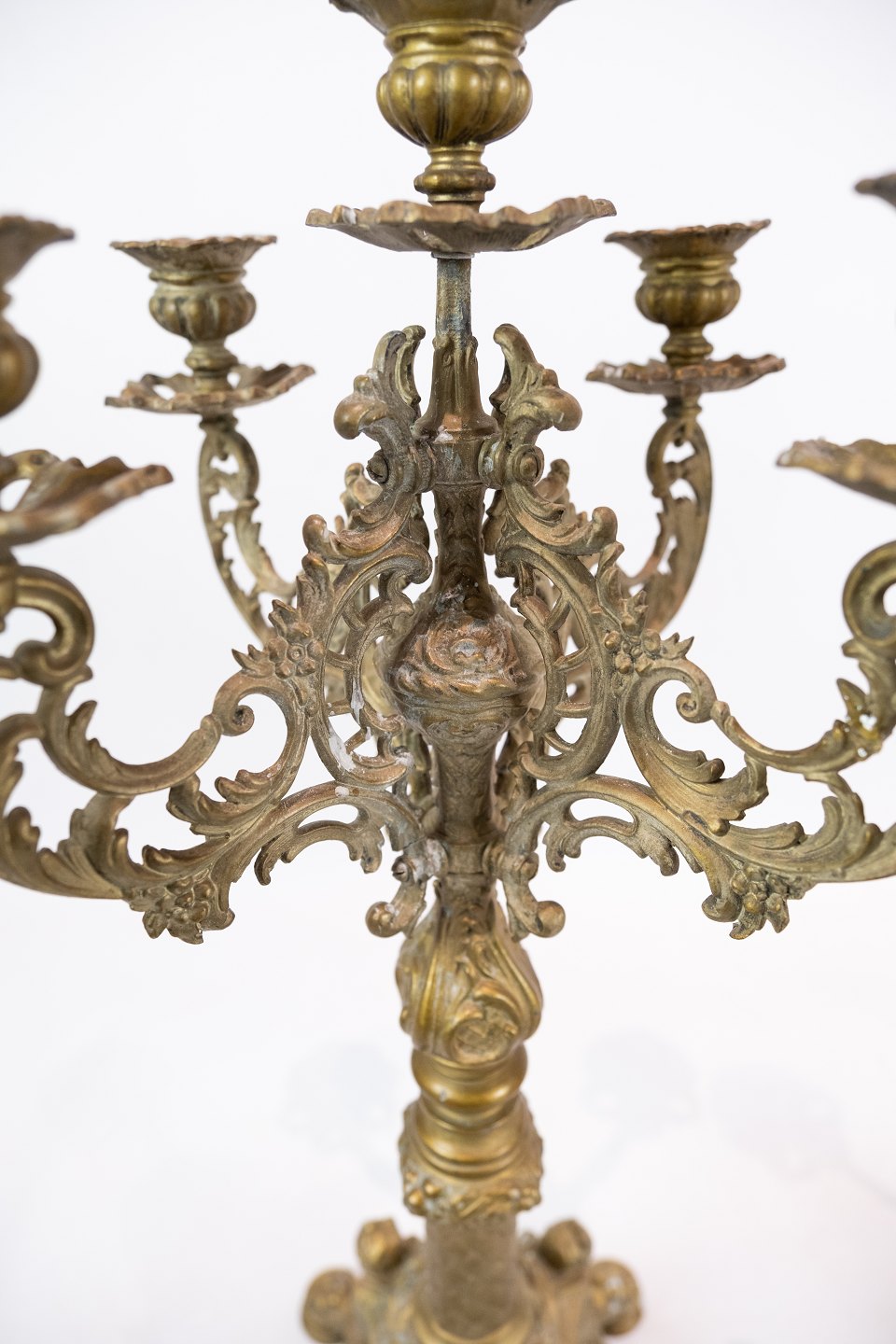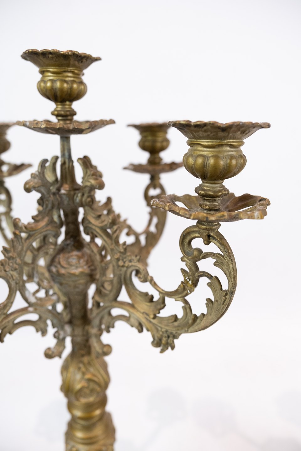 Description: A pair of tall five-armed candlesticks in bronze from France around 1840. The pair is in great antique condition.