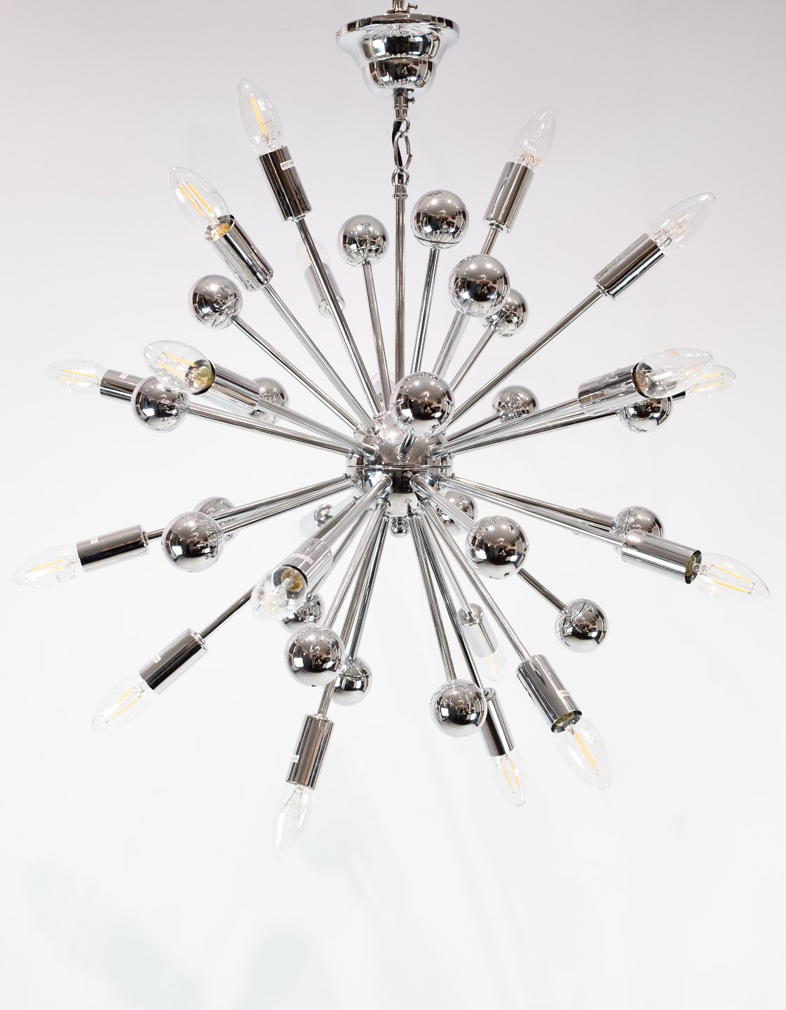 Loft Sputnik pendel i krom designet af Poul De Haan fra Holland.