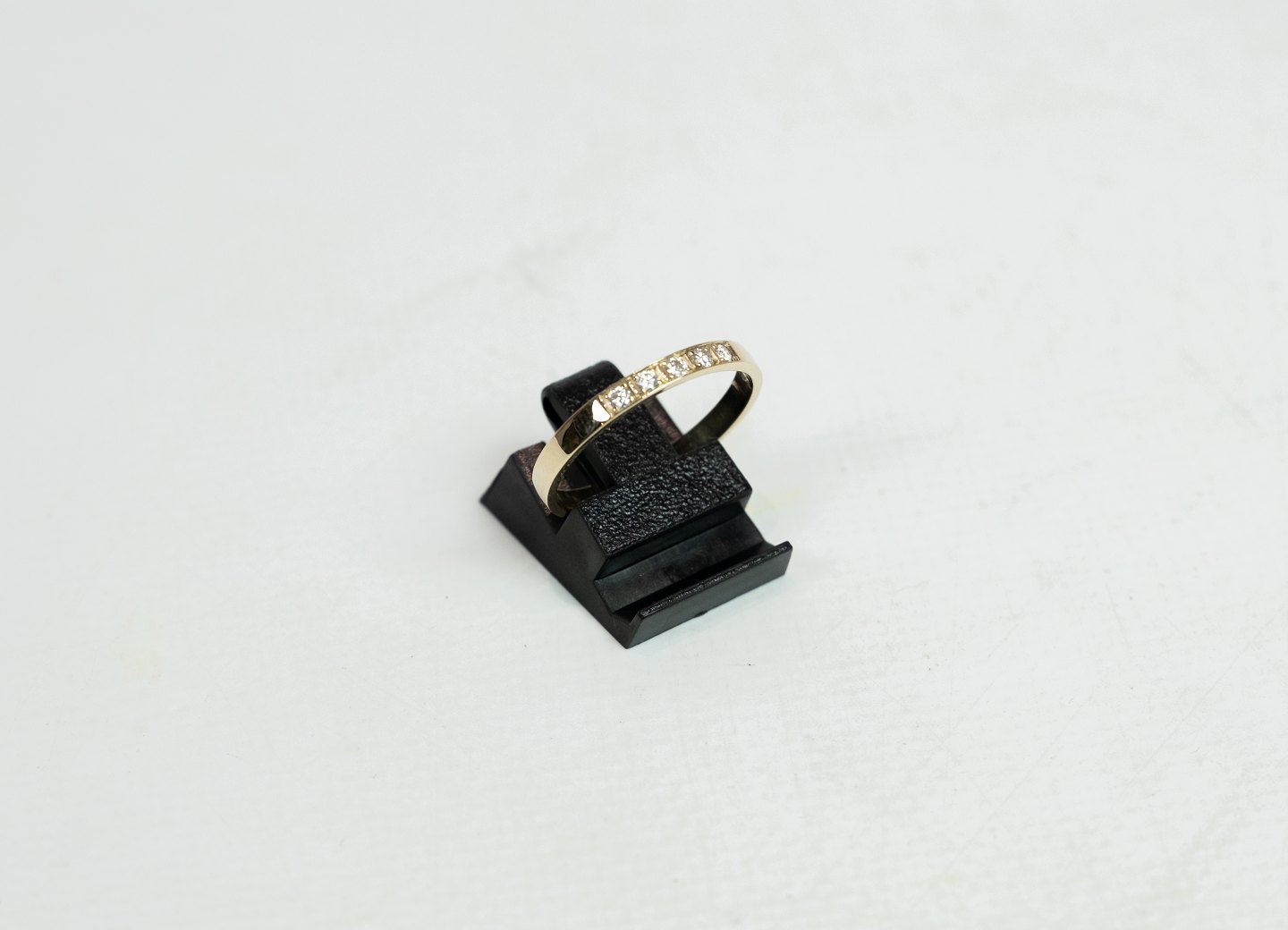 Alliance ring i 14 karat guld dekoreret med 5 små diamanter.