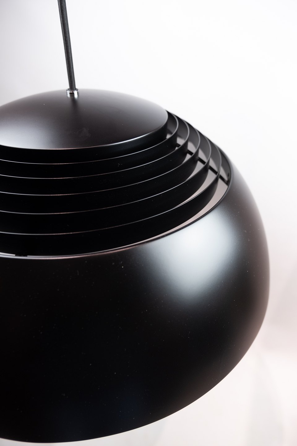 Loftpendel, Royal, i sort metal af Arne Jacobsen og Louis Poulsen.
