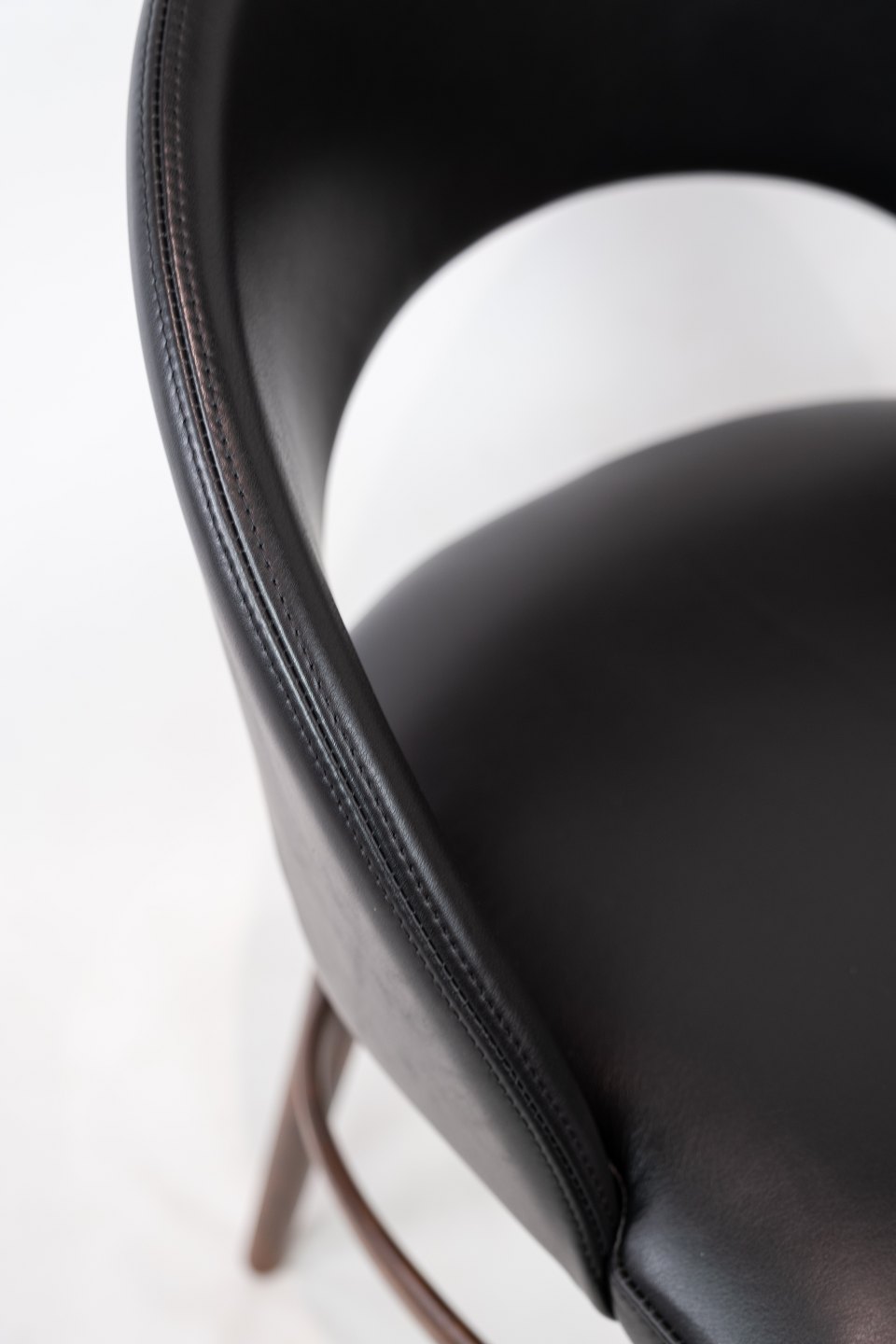 Denne hvilestol er et strålende eksempel på dansk møbeldesign fra midten af det 20. århundrede. Det sorte Elegance læder tilføjer en luksuriøs og tidløs fornemmelse, mens palisanderbenene giver et elegant og varigt udtryk.