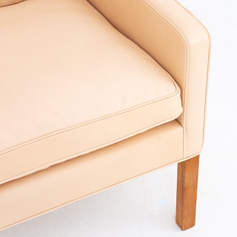 BM 2204 - Nybetrukket Øreklapstol i vegetallæder med ben i valnød.