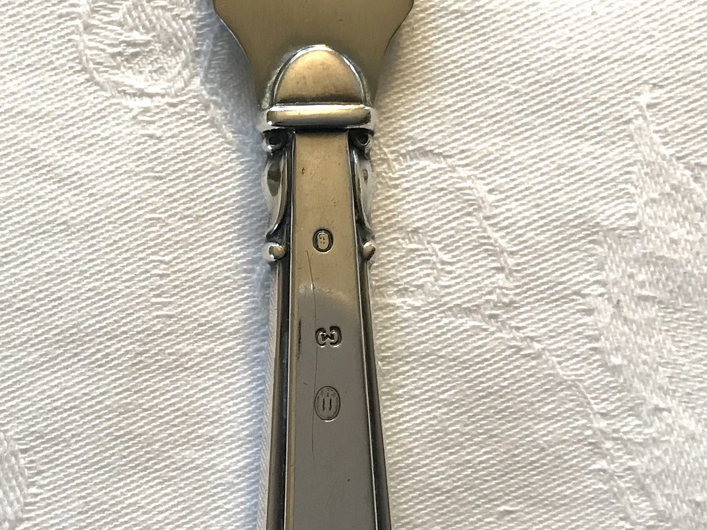 Description: Elite, Layer cake knife, silver / steel, 23.5 cm long, Cohr silverware factory * Nice used condition, however, with a black spot on the side *