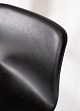 Description: A pair of chairs upholstered with black leather of danish design. The stools are in great vintage condition.